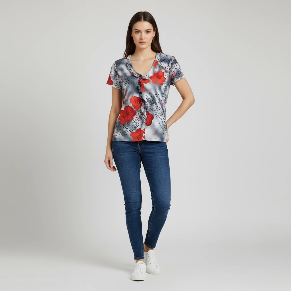 Vállán strasszkővel díszített, elején dupla anyagú női felső