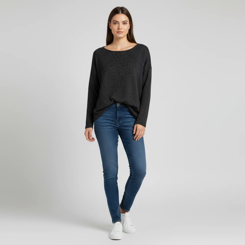 Sötétszürke színű, hosszú ujjú női felső, L méret