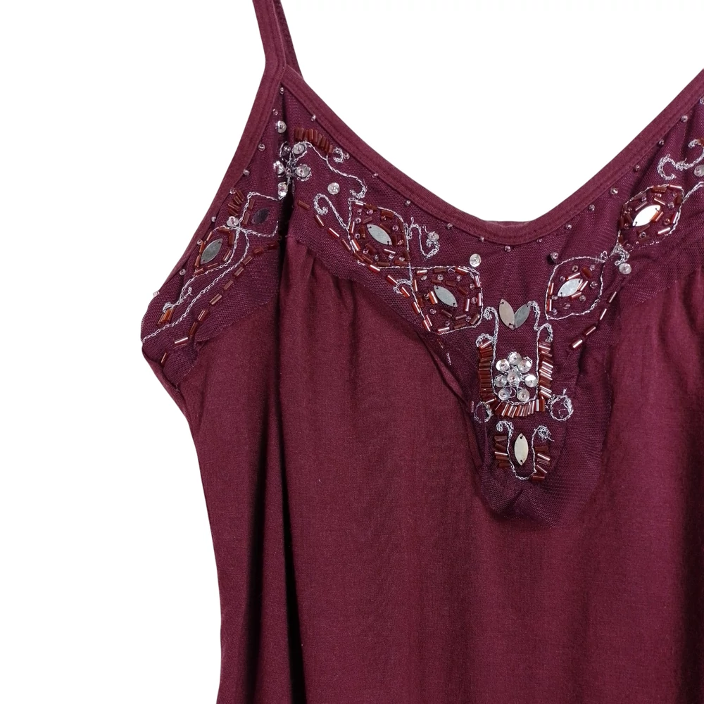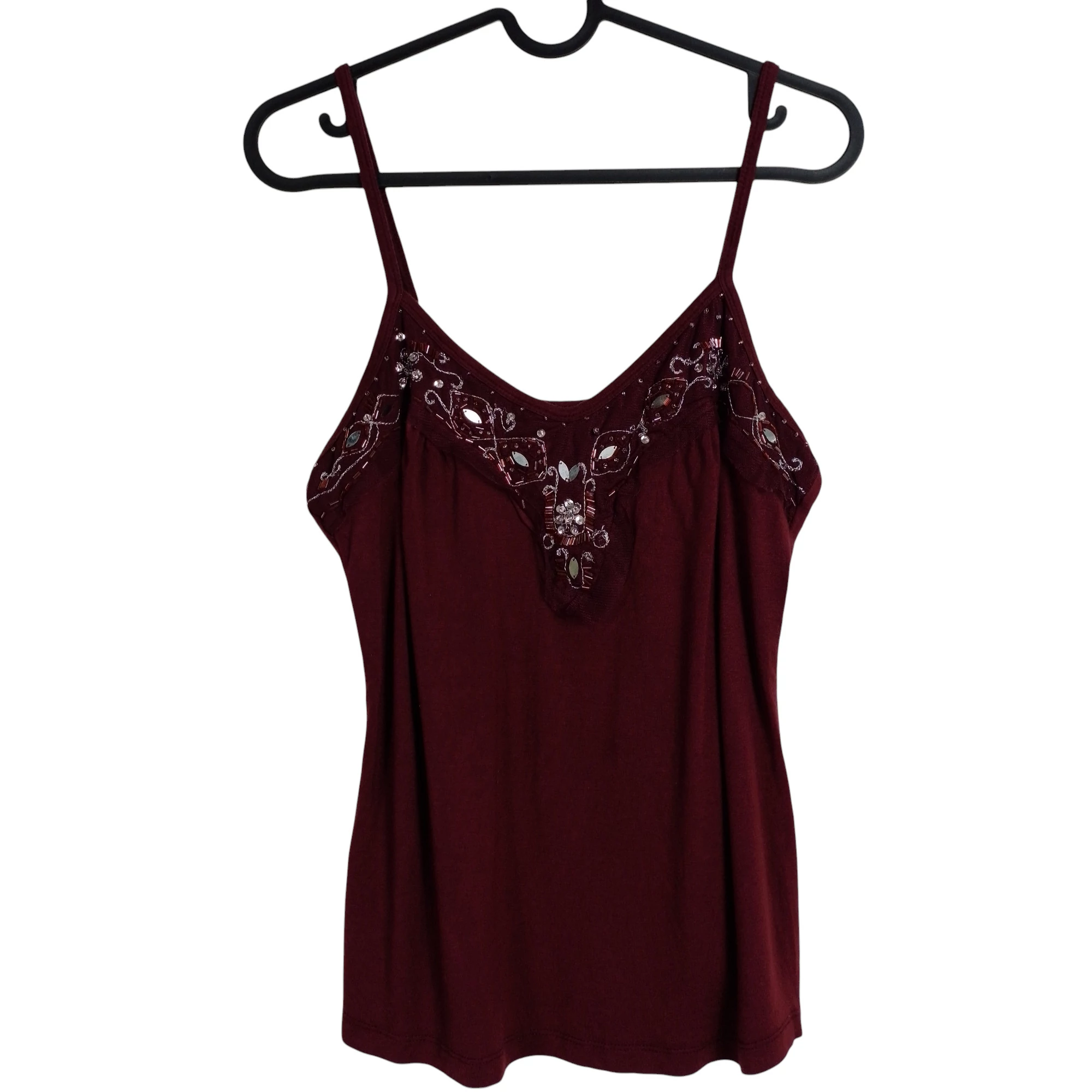 Spagettipántos, nyakrészén csipkével díszített női felső