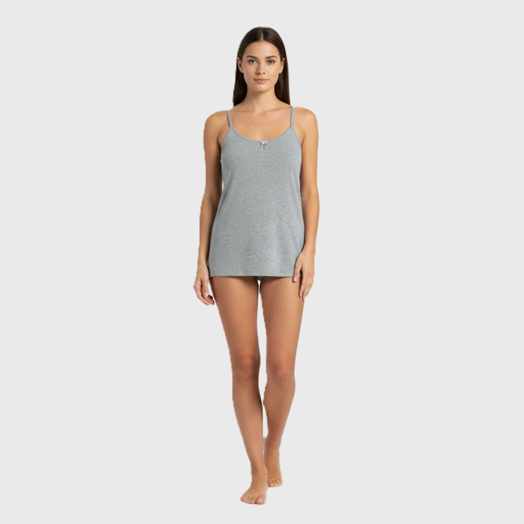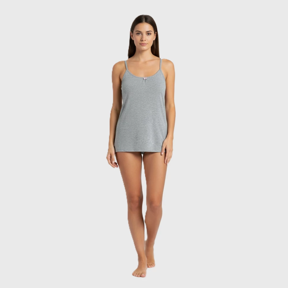 Spagettipántos, nyakrészén csipkével díszített női felső