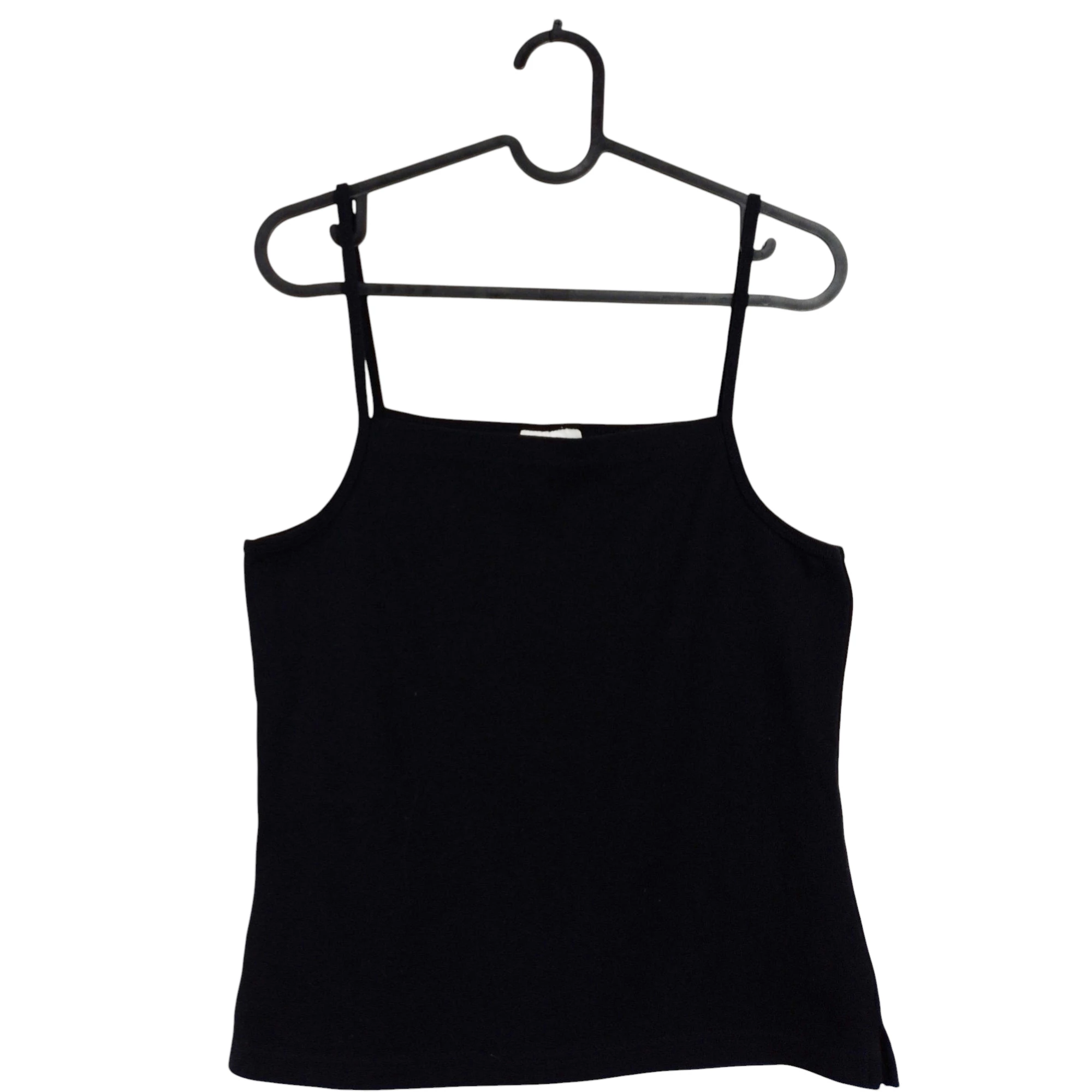 Spagettipántos, mellrészén mintás szegélyű női felső