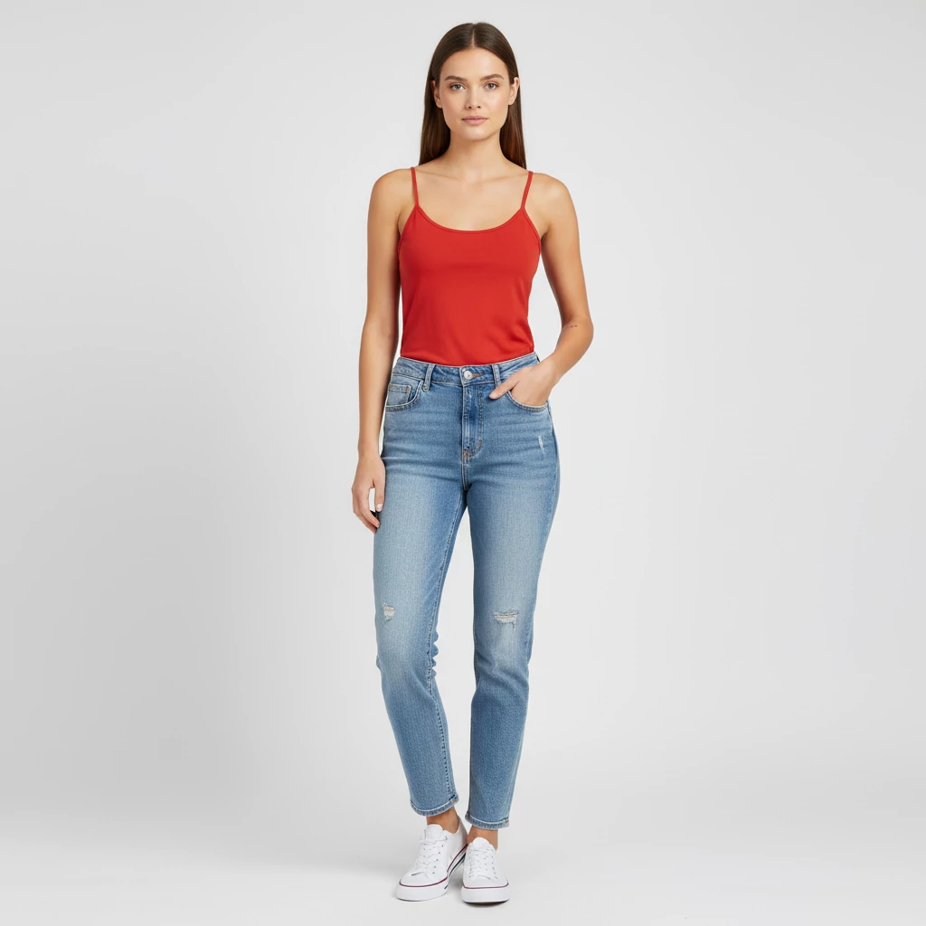 Alján csipkedíszítésű, színes női rövid fazonú trikó