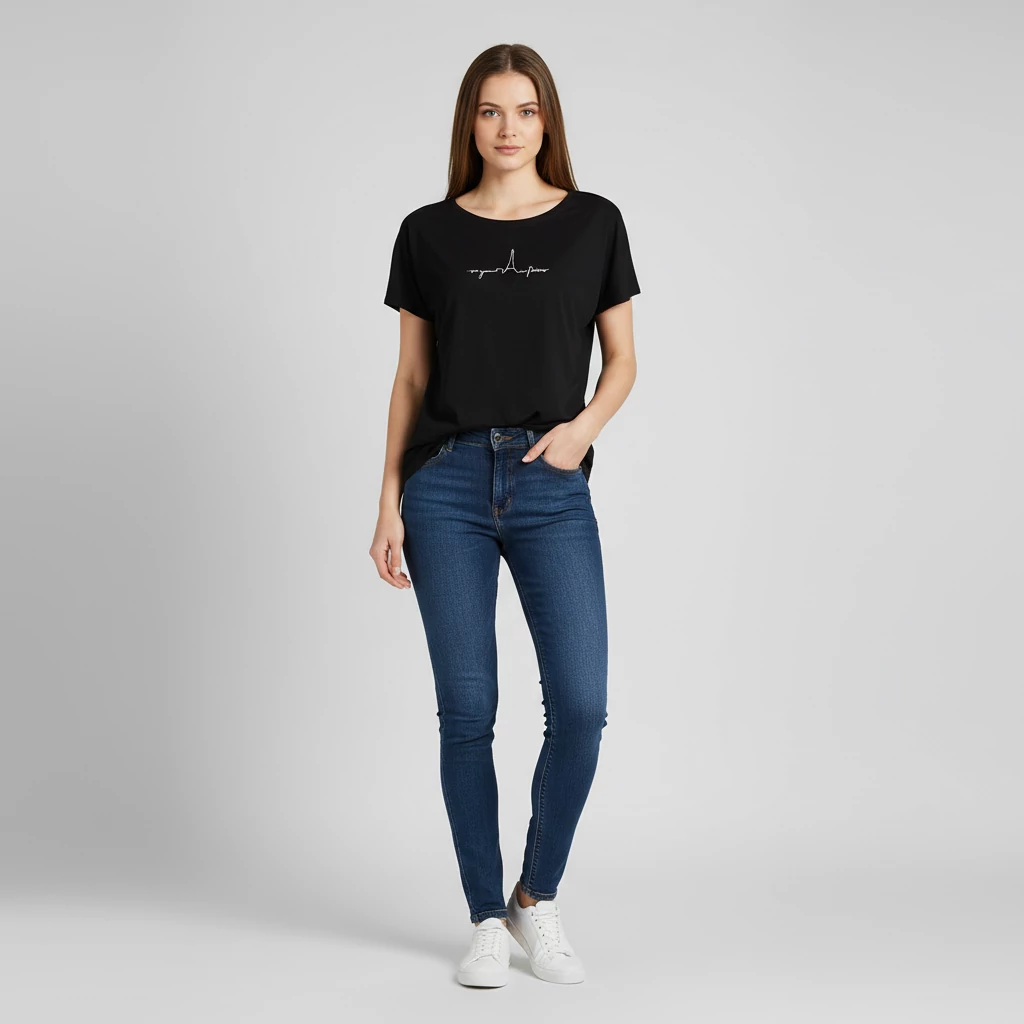 Street One, fekete színű, rövid ujjú női felső, M méret