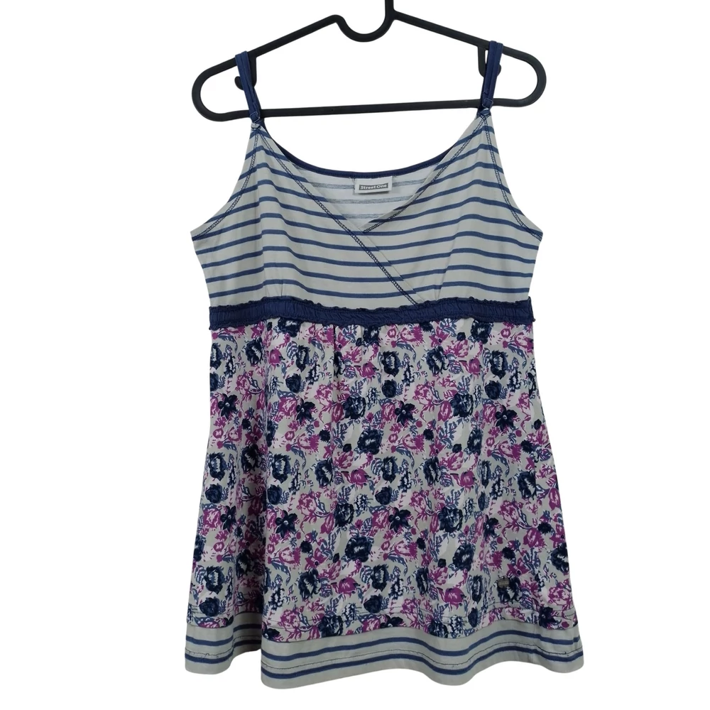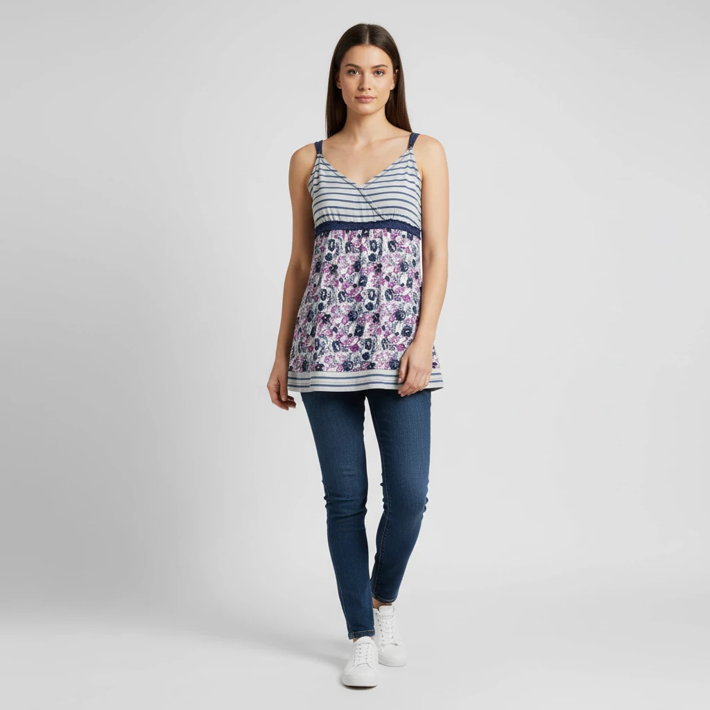 Virágmintás, derékrészén gumis, mellrészén fodros női felső