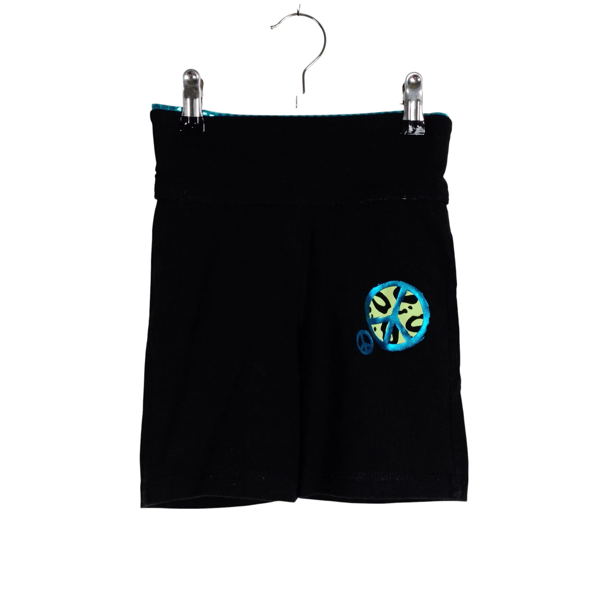 Szára alján hajtókás, színes kislány farmer rövidnadrág