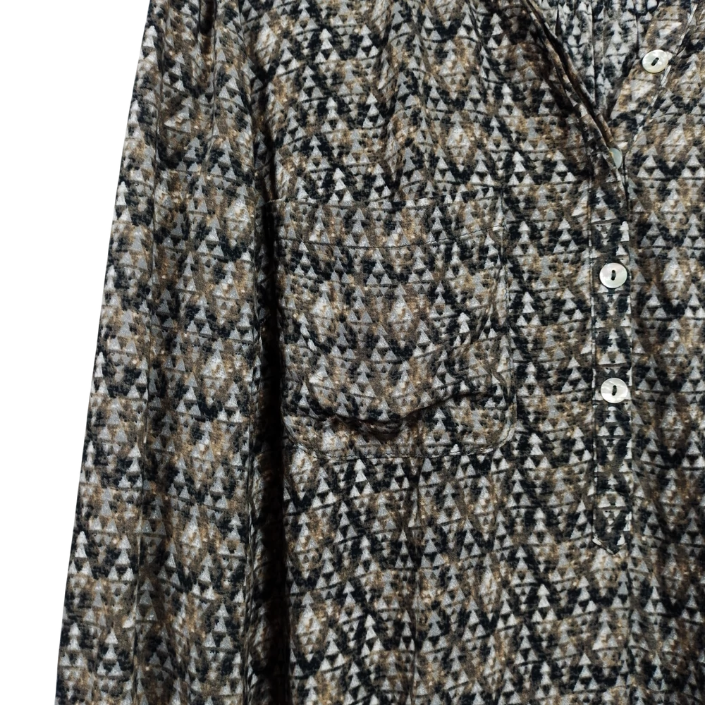 Mintás, mellrészén zsebes női felső