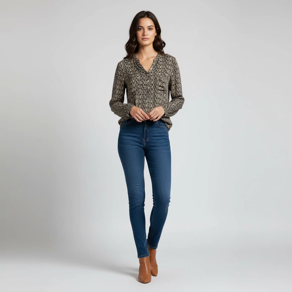 A termékfotón ábrázolt modell nem valós személy, mindössze az MI közreműködése által generált szimuláció és kifejezetten azt a célt szolgálja, hogy a ruhadarab egy outfit részeként történő viselés közben is bemutatásra kerüljön.