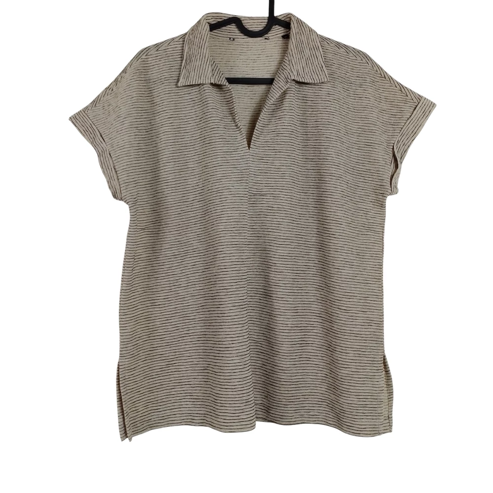 Nyakrészén ezüstszállal díszített, csípőrészén gumis női felső