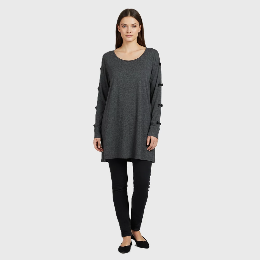Nyakrészén flitterrel díszített, ujján hasított női felső