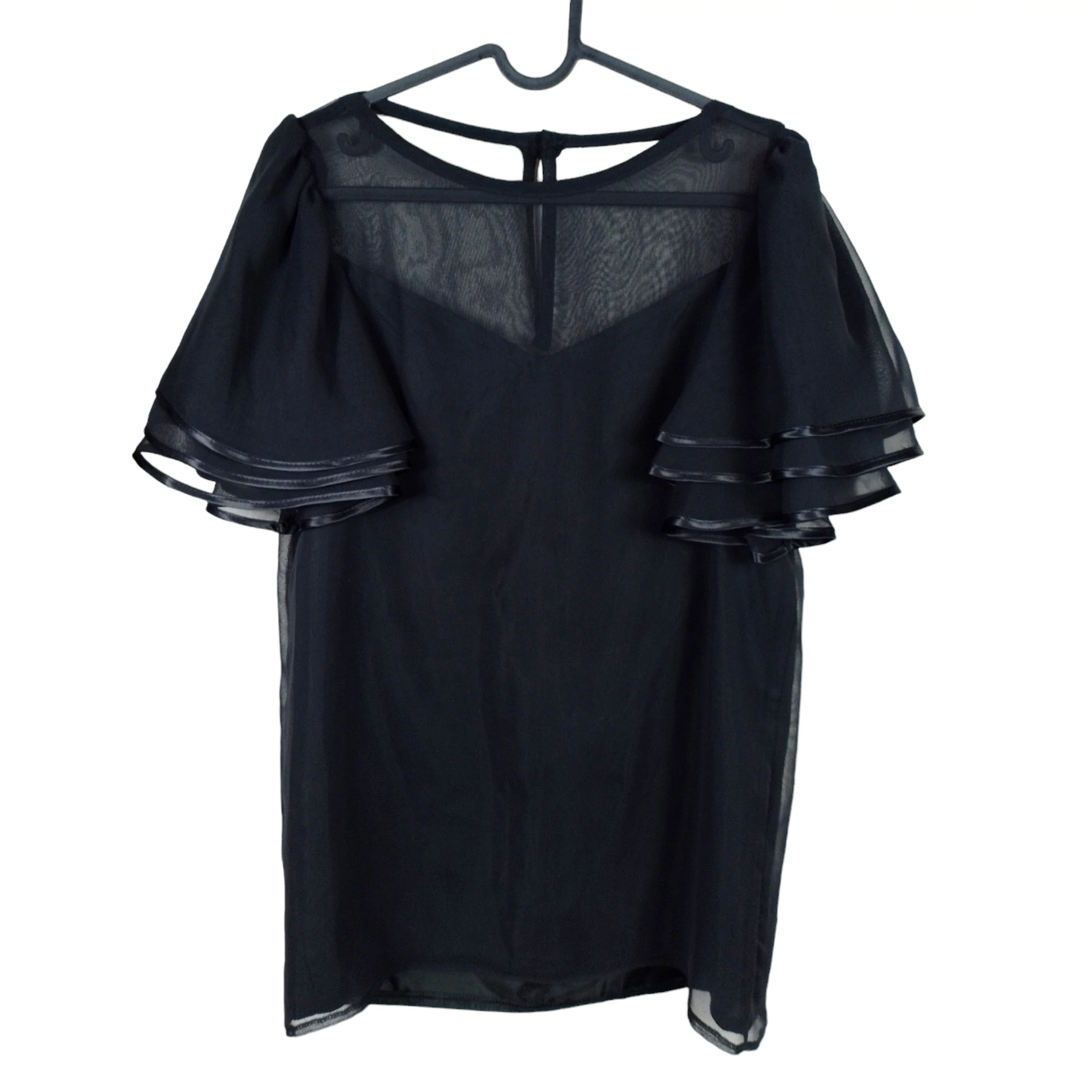 Nyakrészén ezüstszállal díszített, csípőrészén gumis női felső