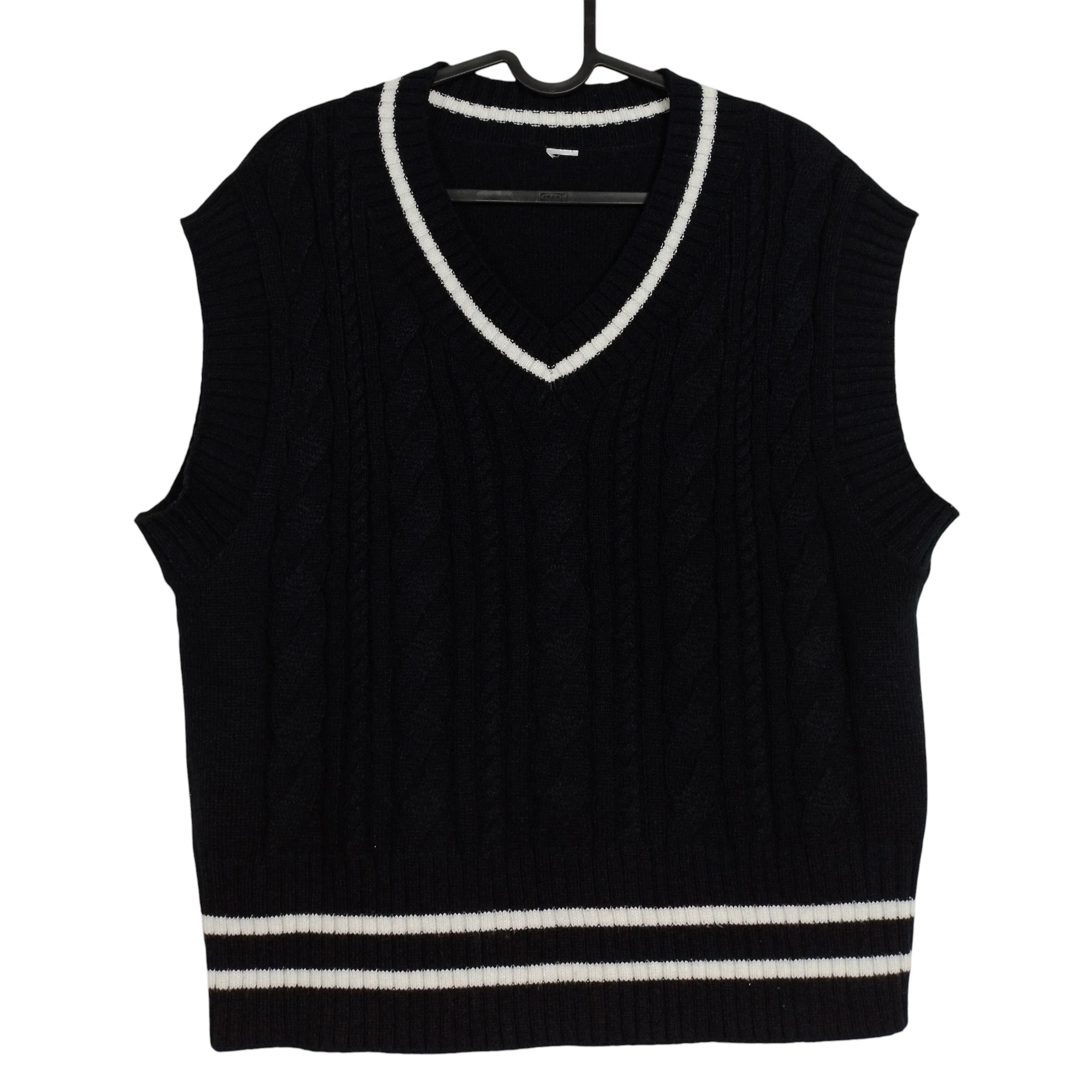 "V" nyakú, csíkkal díszített, kötött férfi mellény