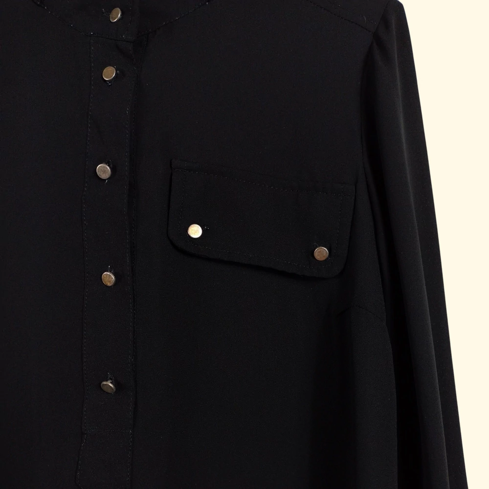 Elején gombos, áttetsző anyagú, pöttyös női blúz