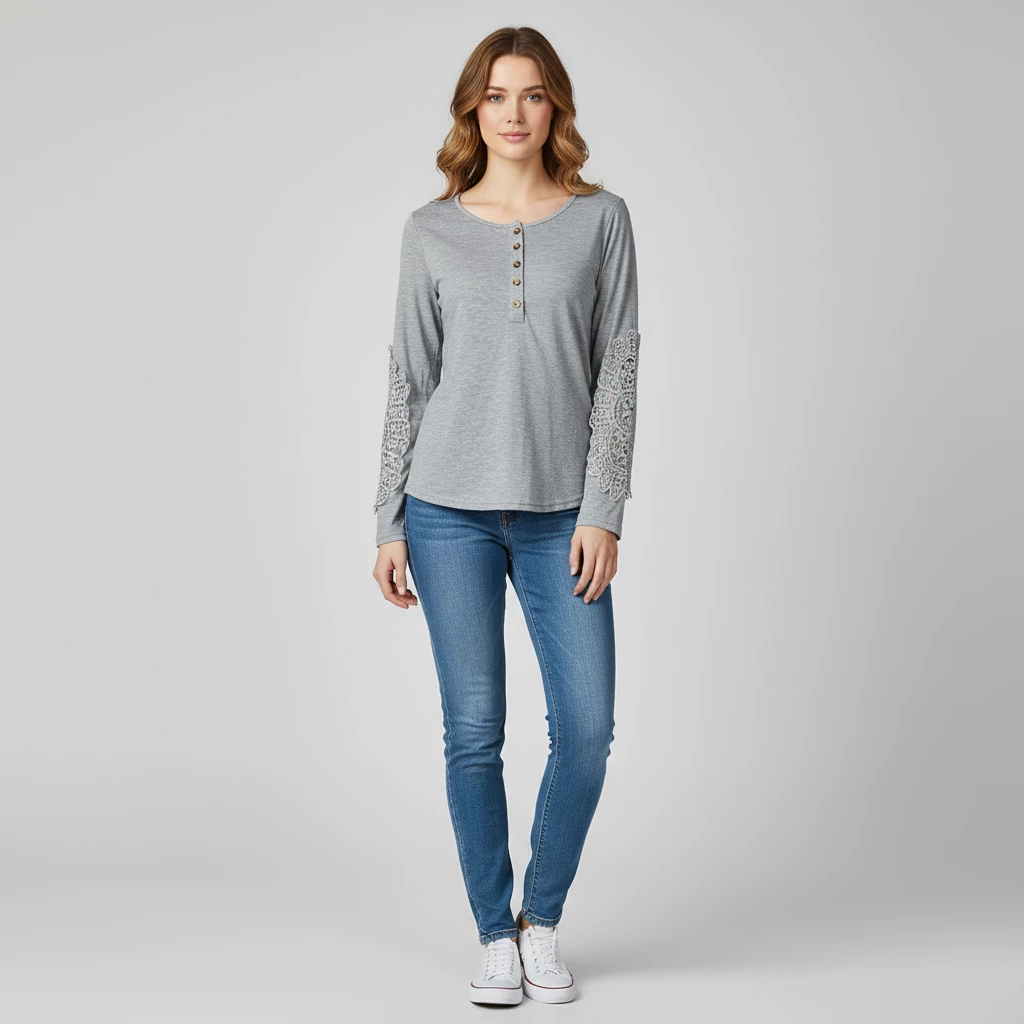 Világosszürke színű, hosszú ujjú női felső, M méret