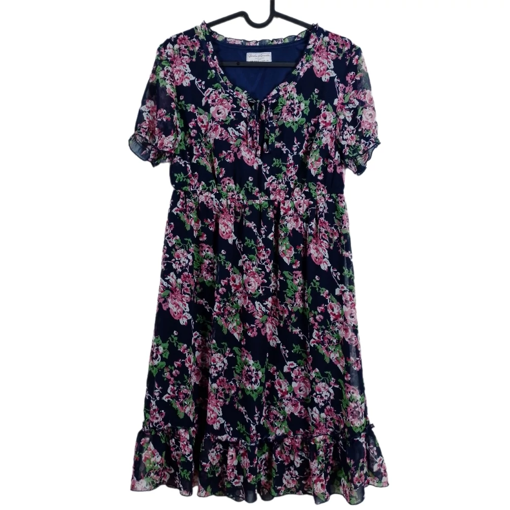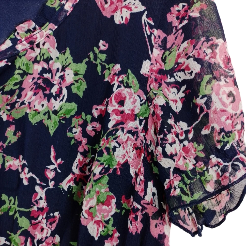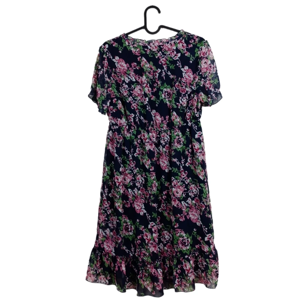 Elején átlapolt, oldalt megkötős, virágmintás női egész ruha
