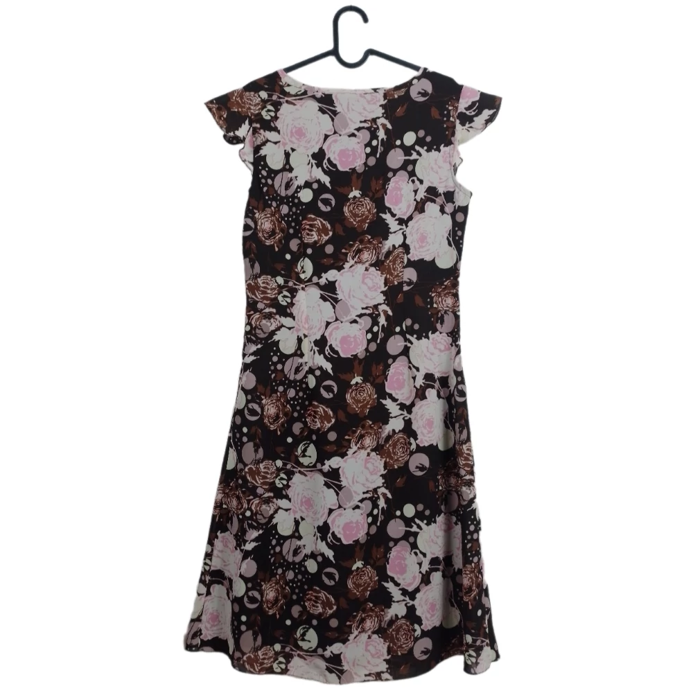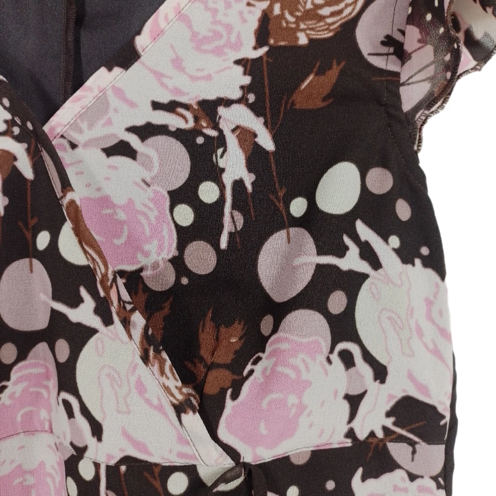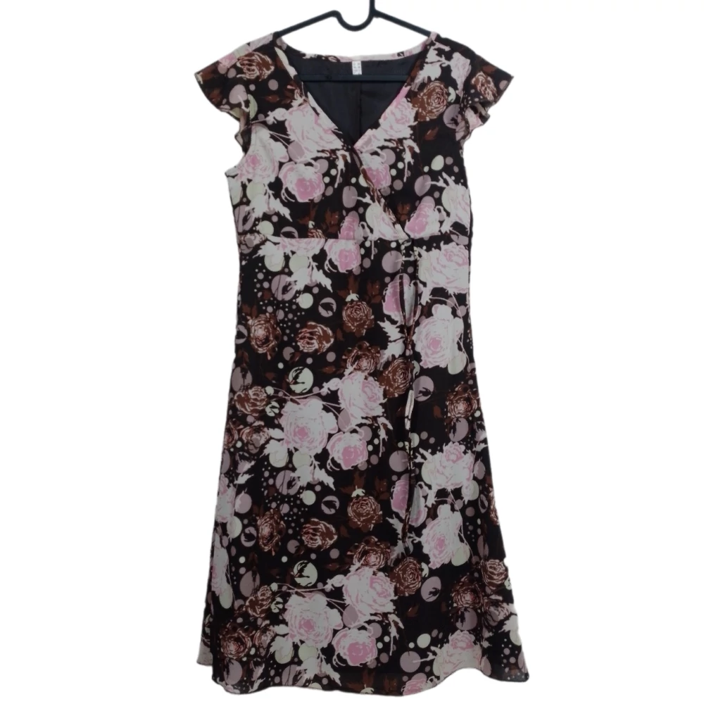 Elején átlapolt, oldalt megkötős, virágmintás női egész ruha
