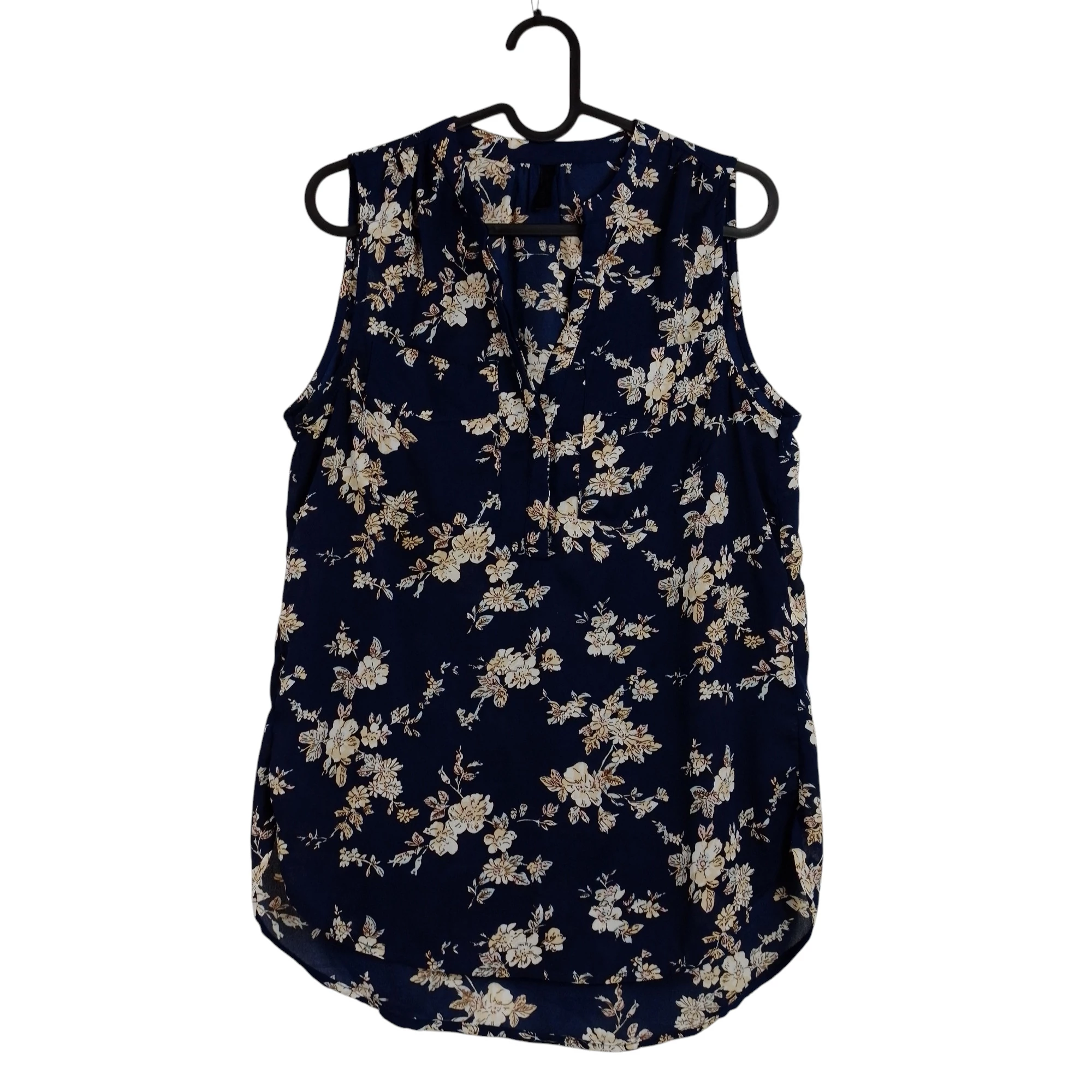 Virágmintás, derékrészén gumis, mellrészén fodros női felső