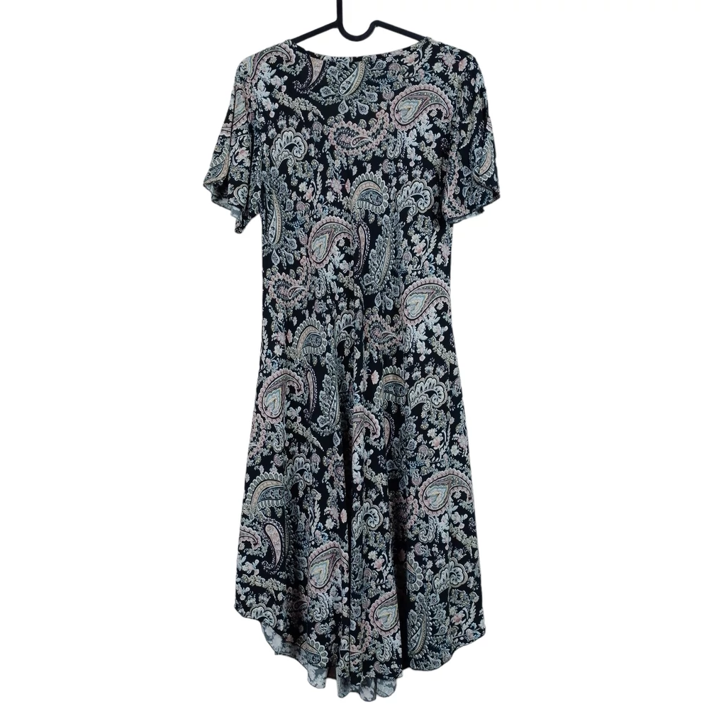 Pánt nélküli, hátulján hosszított, mintás női egész ruha