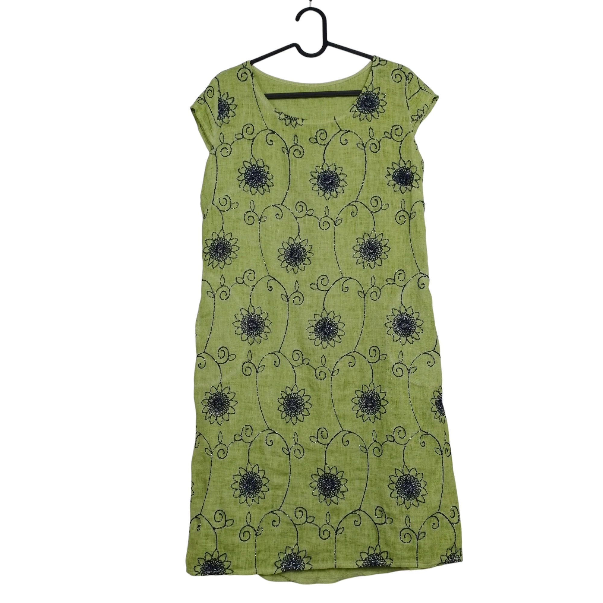 Vállán műanyag elemekkel díszített női egész ruha