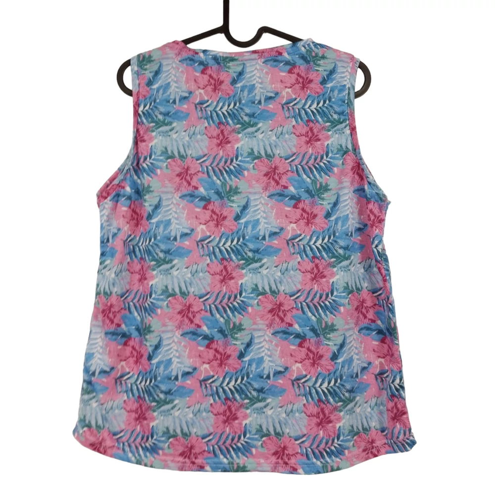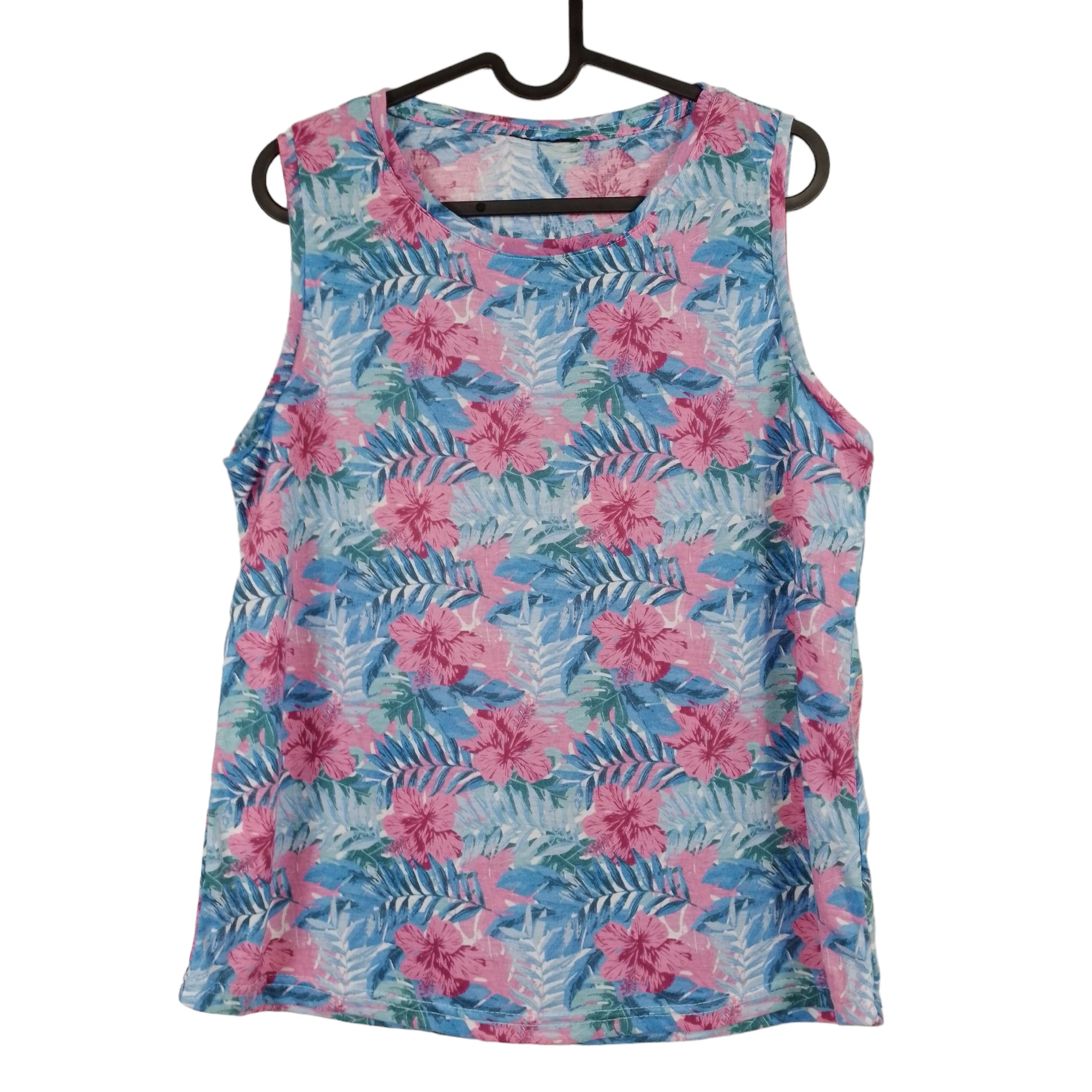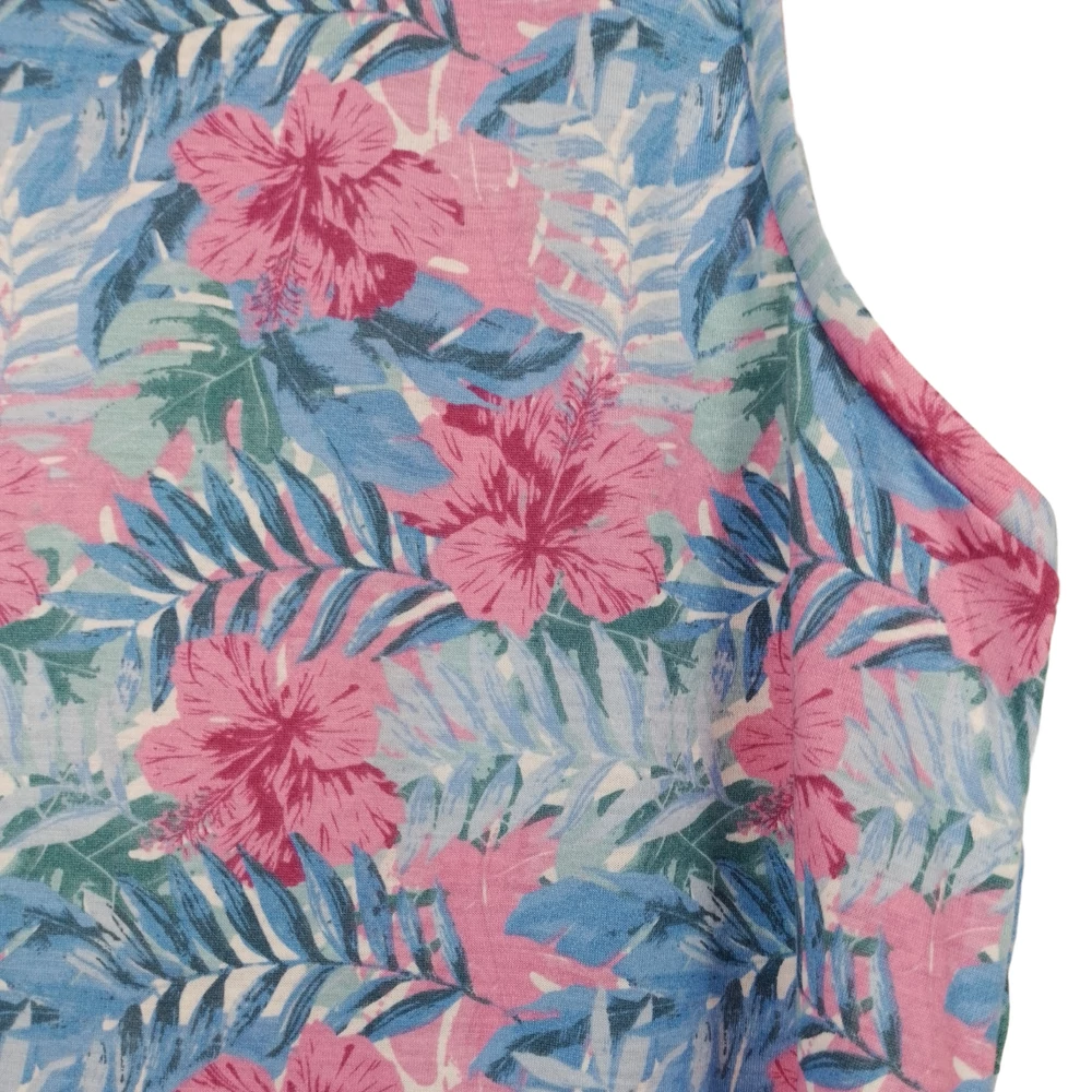 Virágmintás, derékrészén gumis, mellrészén fodros női felső